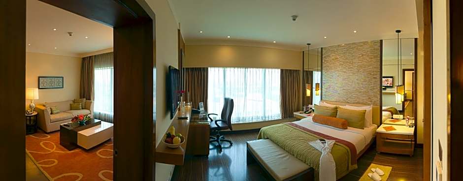 Spacious high-floor suite features a separate living area. Includes a flat-screen TV, mini-bar and personal safe. Bathroom has hot-water showers.